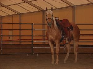 kurz s Milanem KovářemPro posledního koně – dvouletého valáška plemene quarter horse – nebyla práce ze země takovou novinkou, loni na podzim se již základního kurzu s Milanem Kovářem zúčastnil. Cílem tedy bylo zopakovat základy, posunout je dál a stejně jako u předchozí kobylky – poprvé osedlat. Valášek, zvyklý pracovat dle zásad horsemanshipu, vše přijímal ochotně a s důvěrou.