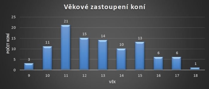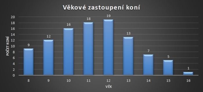 Nejvíce startujících koní je ve věku 10 let (26 koní), ovšem téměř shodná je jedenáctiletá a dvacetiletá skupina (23 resp. 20 koní). Nejmladším koním je 9 let.