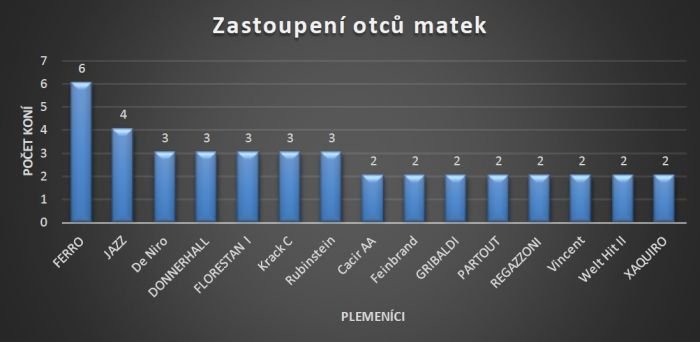 Mezi otci matek vítězí „otec neznámý“. Ale teď už vážněji. Nejvíce zastoupeným otcem matek je plnokrevný Heraldik xx (Caramel xx – Cale xx), který má v nejlepší 100 hned 3 zástupce. Po dvou zástupcích pak mají holštýnský Cavalier Royale a Rock King (Just a Monarch xx – Rugantino xx). Ostatní plemeníci pak mají po jednom potomkovi každý.