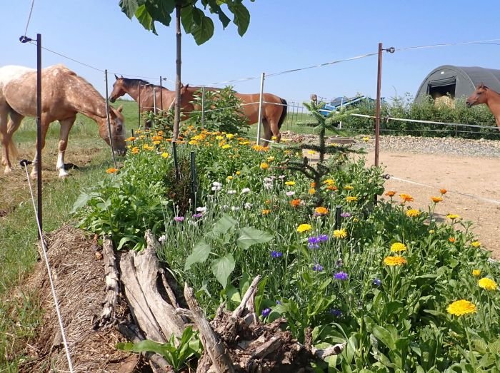 Fermentační hromady (ať už kompostovací nebo hnojné) nesmrdí nad rámec zvyklostí – tedy toho, co se u koní, s trusem celodenně padajícím všude na plochy, kde se pohybují, dá očekávat. Navíc, pokud se rozhodnete fermentovat kobyláky přímo ve zvýšených záhonech kolem ohrad, budete potřebovat trochu zeminy, kterou překryjete vršek. Takto založené obruby koňských výběhů a pastvin nesmrdí dokonce vůbec! A dají se esteticky hodnotně osázet. Přes zimu postupně z kobyláků nastřádaný zvýšený záhon je na jaře nachystaný pro výsev dýní, slunečnic nebo pro sadbu rajčat. Tato na živiny a teplo u kořenů náročná zelenina nádherně odčerpá jakoukoli nadprodukci živin ze zfermentované hmoty. A na další sezóny zanechá nádhernou „hlínu“ – ano, přesně tak po prvním roku osázení totiž na podzim vypadá. Jako překrásná, voňavá, načechraná zemina. Po „hnusném“ hnoji ani památky… A navíc tyto hromady, kopce a zvýšené záhony vypadají přes celou sezónu nádherně! A nesou užitek. A nepřitahují mouchy, ale včely, motýly a užitečný hmyz.