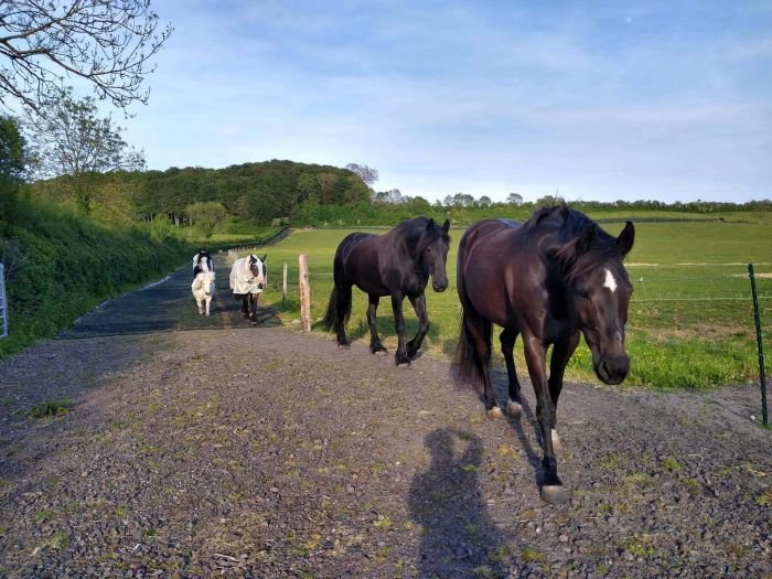 Zpevněné treky kolem pastvin se strategicky rozmístěnými dávkami sena mají nesporné výhody: v bahnech pošetří travní drn a zároveň zajistí koním dostatek pohybu po pevném podkladu – kopyta velice prospívají! Samozřejmostí je přístup na základní výběh. Ale s vysbíráváním trusu musíme být opatrní, abychom do hnojiště nevozili i větší kusy kameniva.
