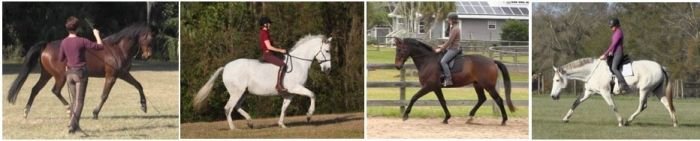 Poté jezdce učíme, jak se svým koněm vést dialog, týkající se protažení. Učím je experimentovat, aby si sami našli stupeň uvolnění, aktivity a rovnováhy, kde jim kůň sděluje, že se cítí vyrovnaně a natolik v harmonii, že aktivně uvolňuje horní linii v pohybu a protahuje se.