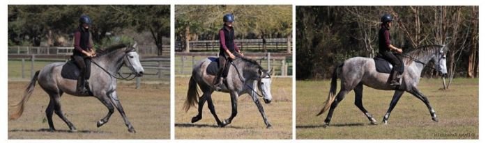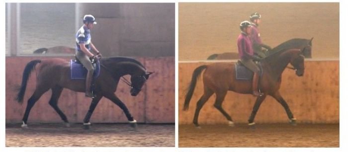 Obrázek vpravo: Tentýž jezdec den poté, když preferuje rovnováhu a sebenesení. Tato změna v preferencích způsobila mnoho tréninkových problémů, které jezdec přijel řešit na výše zmíněné soustředění.