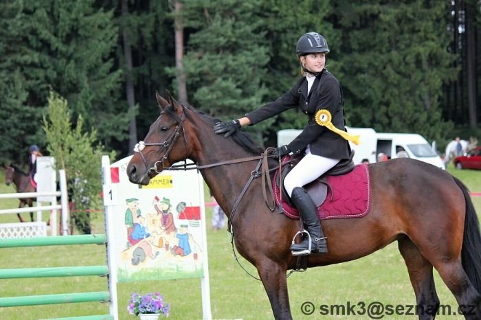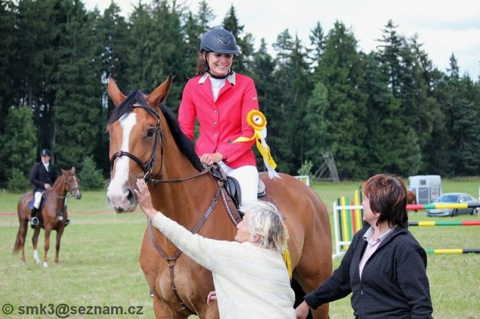 V čele se umístili hned dva zástupci tohoto jezdeckého klubu – vítězná Pavla Okurková na Cesně a Svatava Teplá s Jackem 6. Třetí místo získala domácí Kateřina Krobová s Fleur 1. Dalším dvěma zástupkyním pořadatelské stáje, Karolíně Štefáčkové s Gitou a Lucii Hrnčířové, jejíž Beauty 4 se závodů účastnil poprvé, už tolik štěstí nepřálo. Rozeskakování v této soutěži bylo napínavé. Z osmnácti dvojic jich do něj postoupilo osm, ovšem šest získalo trestné body a jedna byla vyloučena pro druhou neposlušnost. Pavla Okurková s Cesnou byla poslední účastnicí v rozeskakování a k vítězství jí stačilo přejít kurz parkuru bez jediného trestného bodu, což se jí také podařilo. Při své cestě za výhrou navíc zajela druhý nejlepší čas tohoto rozeskakování (50,72).