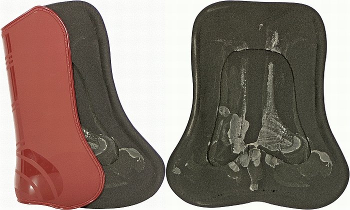 V oblasti šlachy je noha chráněna pouze jednou vrstvou 2 mm silného neoprenu, po obvodu chrániče je tato vrstva dvojitá.