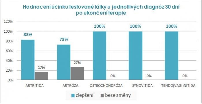 Výsledkem studie bylo zřetelné zlepšení všech kloubních problémů u 91 % koní po 30 dnech od ukončení studie. Účinná látka tlumila zánětlivé příznaky i v silně iritovaném kloubu a její užívání vedlo k ústupu náplně kloubu, zlepšení projevů kulhání a ústupu bolestivosti.