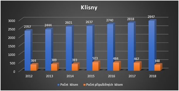 Protože bez klisen by nebylo chovu, podíváme se nejprve krátce na to, jak je to s klisnami. Počty klisen zapsaných v PK CS v posledních šesti letech stabilně stoupají, a to z 2 357 v roce 2012 na 2 947 v roce 2018. Co se týče počtu nově zapsaných klisen, docházelo v průběhu posledních šesti let k mírným odchylkám, nejvíce jich bylo zapsáno v loňském roce (245) a nejméně pak o rok dříve, v roce 2017 (186). Také počty připuštěných klisen se v jednotlivých letech logicky liší. Nejméně jich bylo připuštěno právě v loňském roce (348), nejvíce pak v roce 2015 (503) a 2016 (484). Během let 2012–2018 bylo připuštěno celkem 2 948 klisen.