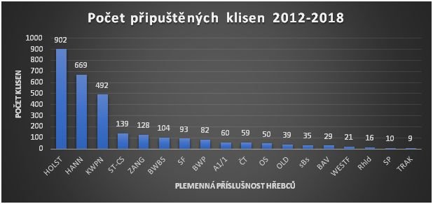 Není se tedy čemu divit, když si řekneme, že nejvíce klisen v posledních šesti letech připustili hřebci nesoucí holštýnský výžeh (902 klisen). Také hannoverští hřebci si udrželi pozici a připustili 669 klisen, stejně jako hřebci plemene KWPN, kteří připustili 492 klisen. Čtvrté místo s nejvyšším počtem klisen obsadili hřebci plemene slovenský teplokrevník (139), následováni hřebci plemene Zangersheide (128). Hřebci plemene český teplokrevník připustili 59 klisen a plnokrevní hřebci 60 klisen.