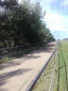 Malý domácí trek – cestičky vysypané štěrkem, základní výběh zpevněný rastry zasypanými kamenivem. Díky těmto opatřením koně ani na malé velmi namáhané ploše nevytváří podmínky pro škody na půdním fondu vlivem větrné eroze.
