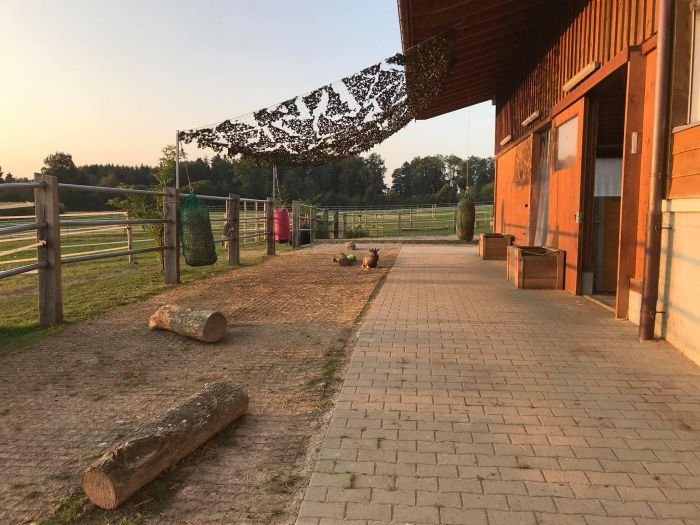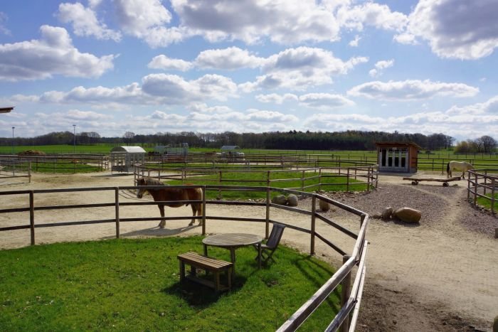 Tato stáj pase na poměrně rozlehlých pastvinách, ovšem přídělově. Ve zbytku času jsou koně na trecích a základním výběhu. Všechny povrchy jsou zpevněny různými typy štěrku a písku. Bez problémů si tu poradí i s koňmi, kteří potřebují hodně chodit a přitom se nepást.