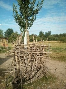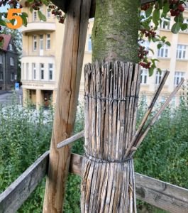 Fotografie číslo 5 – bambusové a rákosové rohože. Velmi vhodná ochrana kmene, která však před koňmi ne vždy obstojí. Pokud ji doplníte o dřevěnou či kovovou ohrádku, můžete být v klidu, že jste učinili pro ochranu stromu skutečně maximum.