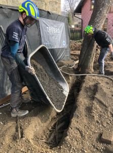 → Odstranění zhutněné horní vrstvy zeminy až ke kořenům a zásyp porézním materiálem.