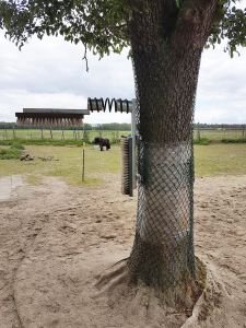 K upevnění používejte provázky či šňůry, které vlivem počasí nekřehnou a které podle přírůstku obvodu kmene snadno povolíte. Opět myslete na hravé koně – úvaz nesmí skončit v jejich útrobách!