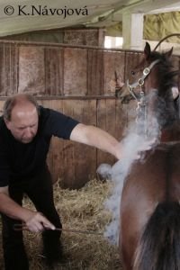 pálení hříbětePo domluvě (inspektor by se vám měl ozvat sám) bude stanoven termín označení a registrace hříběte způsobem, který stanovuje PK. Ať již jde o pálení, nebo nově povinné čipování, hříbě musí být označeno do osmi měsíců věku. Je třeba mít na paměti, že na tuto událost by mělo být hříbě částečně připravené. Tedy mít základní návyky, být schopno si nechat nasadit ohlávku a pak sebou nechat alespoň trochu manipulovat. V dnešní době návratu ke všem přirozenostem se může stát, že povinná registrace hříběte bude stresujícím zážitkem pro vás, hříbě i inspektora a všichni se budete vzájemně honit po pastvině. Dejte si prosím proto tu práci a své malé svěřence přichystejte, samotné pálení ani aplikace čipu většinou nejsou tak stresující jako manipulace a omezení pohybu, na které není hříbě zvyklé.