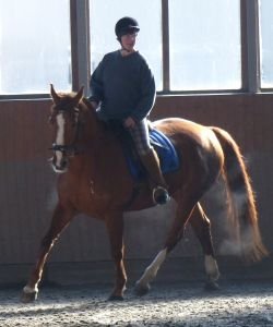 S Terezkou Hassan pracoval spíše na vysvětlení, jak držet otěže a jak jimi působit na koně. Pracovali také na jednodušších přechodech a cvicích, které Terezku postupně dovedly k lepšímu vedení koně a Finn se na konci hodiny tvářil velmi spokojeně a Terezce ve všem vyhověl. Terezka má dobrý sed, ale má za domácí úkol lépe koordinovat práci holení s rukou a naučit se udržet koně více na kontaktu.