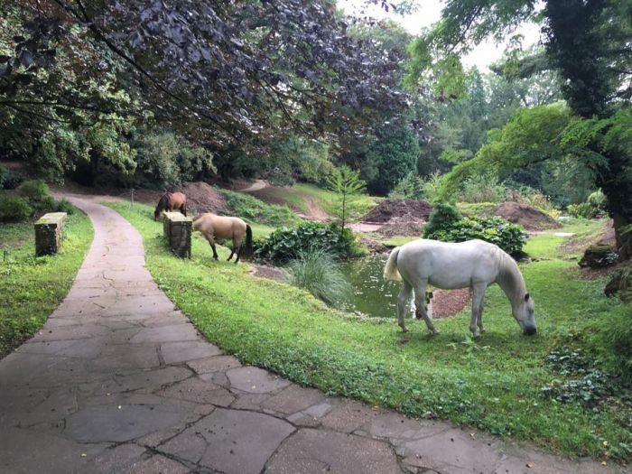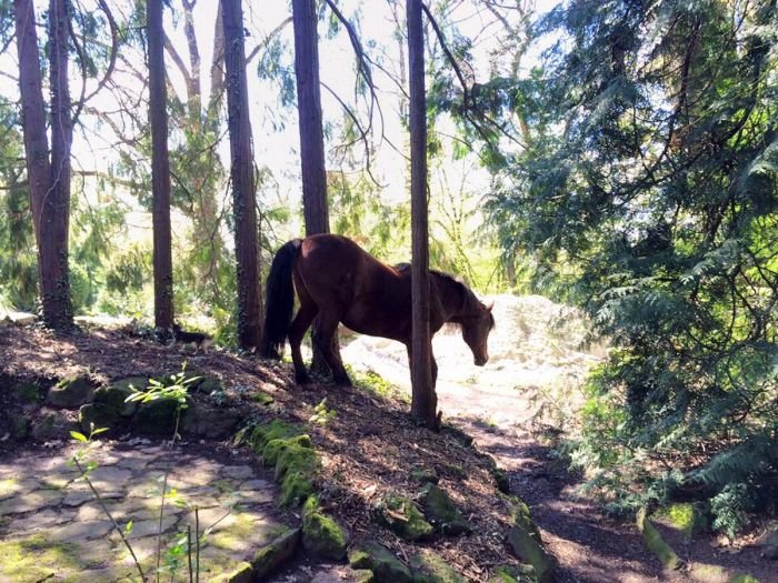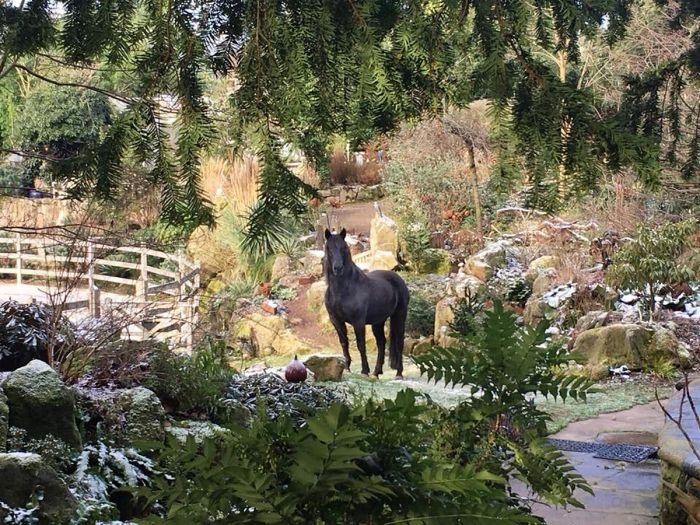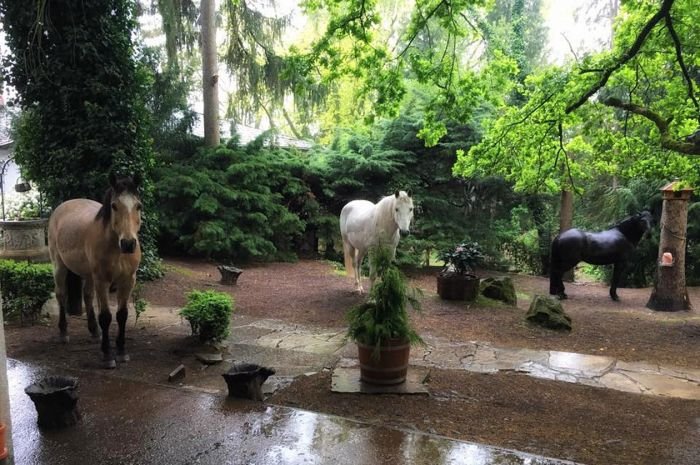 Takže i v dešti chodí koně po úplně všech cestách bez omezení, jak je zrovna napadne? Nezlobte se, že se ptám znovu, ale nemohu uvěřit, jak krásně zahrada vypadá s non-stop koňskými obyvateli…
