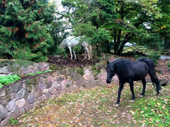 Sem tam musím trochu omezit menšími oplůtky některá zákoutí – např. růže a bambus – ta musí být před koňmi chráněna, velmi jim chutnají. 🙂 Proto chutných rostlin nenajdete u mne v zahradě mnoho – spíše naopak: naprosté minimum. Z tohoto pohledu mám raději nejedlý porost, kterého si koně vůbec nevšímají. Nebojím se ani tisu, rododendronů, kapradin… nic z jedovatých druhů nedělá nejmenší problém. Jsem vystudovaný zahradník a určitě bych si letitou práci nenechala zničit a sežrat. 🙂