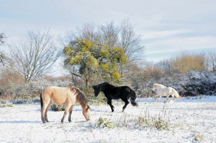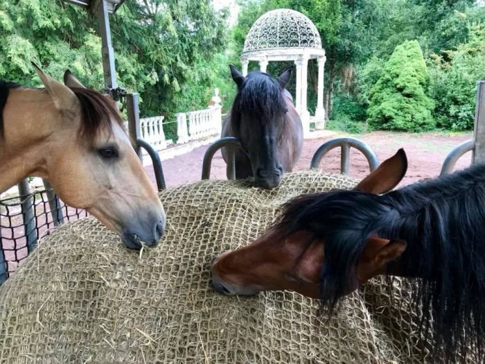 Stejně tak jsem letitý koňák, který miluje svá zvířata, takže je nemyslitelné, že bych dopustila, aby se koně živili něčím, co jim ubližuje – ale opravdu ani po 12 letech v této parkové zahradě jsem nezaznamenala jediný případ poškození zdraví svých koní. Ovšem podstata bezproblémovosti je velký prostor a stálý přístup k několika stanovištím sena tak, aby koně mohli žrát bez omezení, aby seno nikdy nedošlo na všech krmných místech, ale vždy někde zbývalo, než postavíme a zavěsíme další.