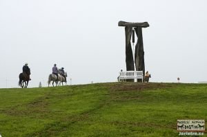 start soutěže Z u zvonicePo několika hodinách jízdy jsme se dostali až k dobře známému kopci s ozdobnými lavičkami, produktem podniku pana Blížence. K mému údivu opět zvítězila technika nad gravitací a náš plně naložený vozík se vydrápal až na vrchol, abychom se mohli zaregistrovat. Během odpoledne doráželi i ostatní závodníci, nebylo jich však tolik, jako bývá na jiných soutěžích. Důvodem bylo pořádání několika dalších akcí ve stejném termínu (závody v Polsku, Rakousku a výstavy arabských koní). To však nebylo na škodu, snad dokonce naopak. Výrazně ubylo různého divokého shonu, tak typického pro závody, vládla zde jakási klidná, přátelská atmosféra.