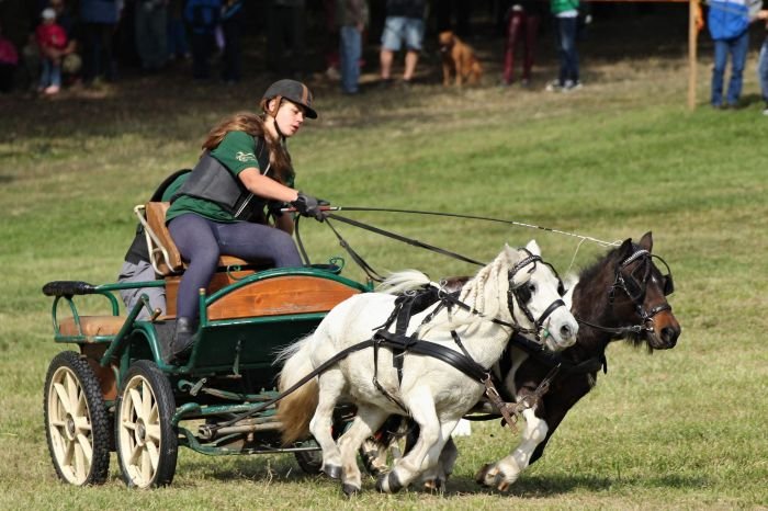 Pak tu máme dvě chovné klisny SHP, obě učí malé děti jezdit a umí i tahat, ale to s ohledem na mateřské povinnosti teď moc nedělají. Jednou z nich je naše první chovná klisna Lilian, kterou jsme přivezli v roce 2005, letos oslavila 25. narozeniny a má se bábuška stále čile k světu. A pak tu mám tři naše odchovy, dvě loňská hříbátka SHP a jednoho čtyřletého hřebce českého sportovního pony. Toho bych ráda viděla v soutěžích spřežení, ale bohužel zatím jednak nemáme druhého do páry a za druhé ten čas pořád nějak schází. Závody spřežení jsou bohužel časově i finančně velmi náročné. Ale třeba se nám to časem podaří.