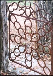Posvařovat z podkov zajímavý vzor, dát mu železný rám a panty, natřít – hračka! Nebo ne…? Kdo zkusil, říká, že zase taková legrace, má-li výsledek vypadat reprezentativně, to není. I šikovní chlapi se zapotí, natož my ženské. 🙂 Ale zase nám bude závidět každá koňácká návštěva. Jen radím, ať brance dáte i slušivý kabátek na závěr – barvy vybírejte trvanlivé, určené do exteriéru.