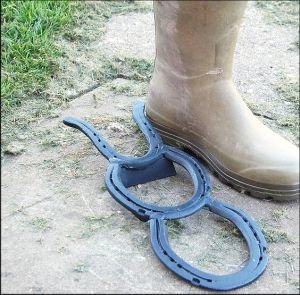 Krom prosté rohožky určené k čištění obuvi si s dostatečnou zásobou podkov můžete svařit rošt před vstup do boxu či přístřešku – zásyp pískem či jemným štěrkem je nutný, aby plocha koním neklouzala.