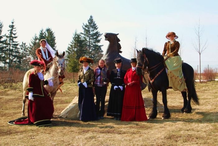 Velmi pěkným zpestřením byla možnost nechat se vyfotit v dámském sedle v dobovém kostýmu s dravcem na ruce. Na Starou poštu s námi totiž přicestovali i dva Karolínini svěřenci, výr velký Kuba a káně Harrisova Harry. Právě Harry nám byl na focení zapůjčen. Po obědě, který se poněkud zdržel kvůli natáčení Výměny manželek, přišly na řadu poslední lekce. Dámy je absolvovaly v jezdecké zástěře, mohly si vyzkoušet cval a některé zvládly i vyšší prvky drezury. Pak už nezbývalo nic, než zabalit a rozjet se do svých domovů. Všechny odjížděly s úsměvem na rtech a se slovy: „Díky za splnění dětského snu".