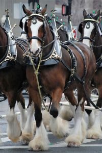 Přestože i toto původní britské plemeno je velmi vzácné, nebude mezi námi mnoho těch, kdo by neznal elegantní a oslnivé „Budweiser Clydesdales“ z reklamních spotů kolujících po celém světě. Slova Budweiser a clydesdales se totiž v průběhu let stala prakticky vzato synonymy. 🙂 A pokud byste čirou náhodou v oblasti pivovarnictví nezabodovali, jistě si plemeno clydesdale spojíte s tradičními ceremoniály britské královské kavalerie, kde clydesdale nikdy nechybí.