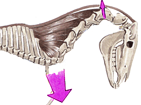 Krátké průvlečky dělají přesně to stejné, jako svaly dolní linie těla během rollkuru – zkrátí dolní linii a táhnou za šíjový vaz tak, že je tento omotaný podélně okolo páteře a stlačuje ji. Spodní oblouk zakřivení krku do S je vytlačený ven a kůň se prohne. K tomu navíc vyvolá tlak do jazyka ztuhlost čelisti a týlu, následkem čehož ztuhne i horní linie, a to stejným způsobem, jak ji zatíná kůň „hledící do hvězd". Zda kůň ve skutečnosti drží hlavu nahoře nebo se ji pokouší zvednout, ale je zadržen průvlečkami, je to stejné. Byl spuštěn stejný prohýbací reflex.