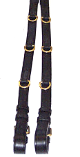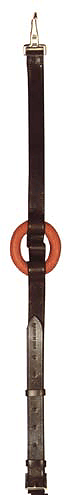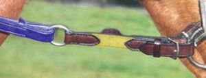 Je to vlastně krátký řemen přidaný k otěži, do něhož je všitá guma. No, všitá možná není přesný výraz. Pevná kožená otěž v tomto místě dělá smyčku a mezi konci této kožené smyčky je ona guma (v případě mírného tahu za otěž), která se může natáhnout tak, že se napne i kožená smyčka za ní (poměrně silný tah za otěže). Tato věcička tak má „vůli" asi 2,5-5 cm.