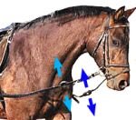 Vyvazovací otěže také nedokážou určovat pozici hlavy koně v týlu, ale spíš mezi prvním a druhým krčním obratlem. Můžete zapnout jednu vyvazovací otěž kratší než druhou, ale při lonžování nemáte kontrolu nad tím, zda se kůň ohne v plecích, uprostřed krku nebo na správném místě.