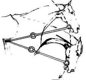Aktivní průvlečky, které táhnou udidlo dolů a dozadu, mezi místo, kde jsou připnuté do podbřišníku a ruce jezdce, lapí koně jako do pasti. Ten sice má prostor, aby se uvnitř tohoto vězení hýbal, ale nikoli do požadovaného směru – dopředu, dolů a před kolmici. Může však zarolovat krk dozadu (zelená pozice). Může ho taky zkrátit a trochu zvednout (červená pozice), ve snaze zmírnit působení udidla.