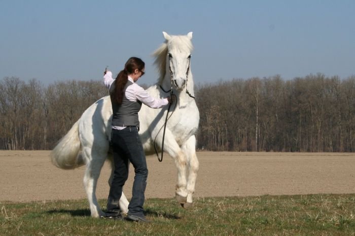 Zanedlouho poté jsem s Claudií absolvovala první intenzivní týden s mým PRE hřebcem Chiquim. Skromnost, empatie, snaha o co nejvěrnější předání všech jejich znalostí a lidskost, to vše jsou důvody, proč se zas a znovu v Oberschwaigu s Claudií několikrát ročně setkávám během intenzivních pobytů.