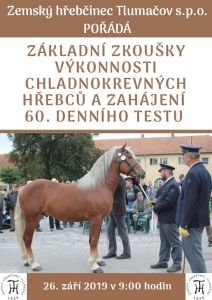 Příznivci chladnokrevných koní pozor! Již dnes, 26. září, se v areálu Zemského hřebčince Tlumačov uskuteční základní zkoušky výkonnosti chladnokrevných hřebců a zároveň bude zahájen i šedesátidenní výkonnostní test.