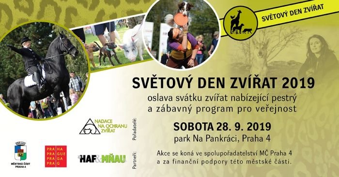 Pozvání přišlo také od Nadace na ochranu zvířat. Ta pořádá v sobotu 28. září, od 11 do 18 hodin, v pražském parku Na Pankráci (dříve Centrální park Pankrác) oslavu mezinárodního svátku zvířat – SVĚTOVÝ DEN ZVÍŘAT 2019.