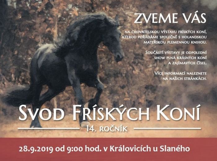 Pozvat vás můžeme také na další ročník svodu fríských koní, který připravila Česká asociace fríských koní. Akce se koná v sobotu 28. září od 9:00 v areálu Královický Dvůr.