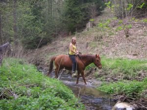 Totiž – trasa putování nebyla pevná, jednotlivé dvojice dostaly do ruky mapu s vyznačenými body A až J, kterými měly během putování projet. A bylo jen na jejich rozhodnutí, v jakém pořadí a kudy se tam dostanou. Díky tomu si všichni mohli dostatečně užít nádherných scenérií Chroustovského údolí a podle svých jezdeckých zkušeností se buď držet údolní lesní asfaltky a z ní vyrážet k úkolům, nebo jet nejkratší cestou domašovskými hvozdy, přes potoky a srázy, cestami kamenitými i bahnitými, sviněmi rozrytými – každý podle své chuti a nátury.