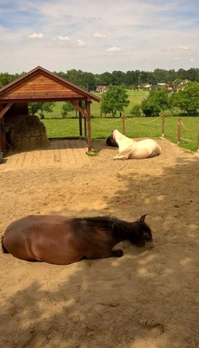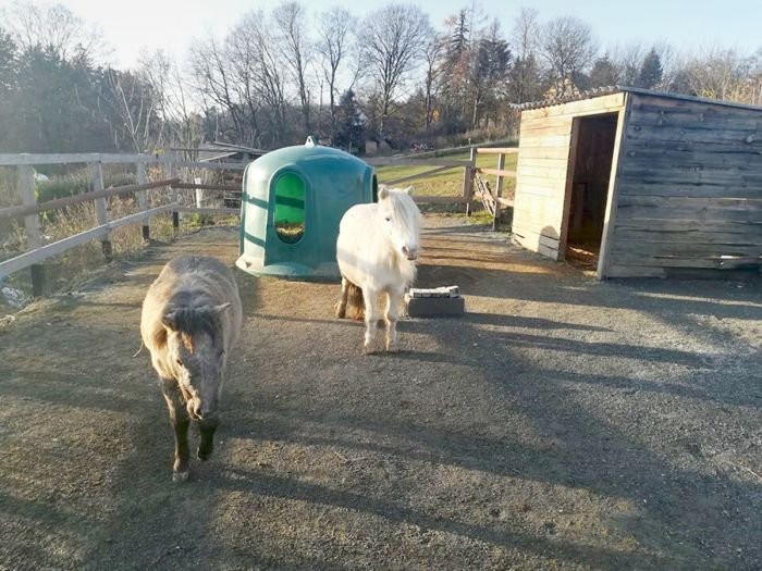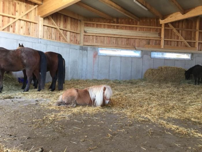 Nyní máme tři koníky – jednoho koně, jednoho poníka a minihorse. Z písku jsou nadšení a rádi si do něj lehají. Otevřené stáje, které máme, jsou již zbytečné, protože je do nich nikdo nedostane.