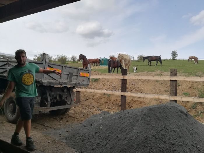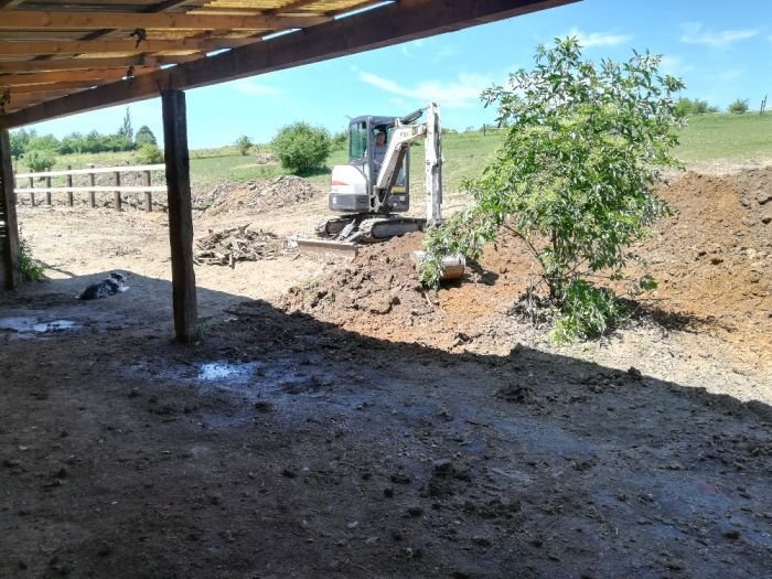 Bez pomoci mé skvělé rodiny, partnera a přátel bych se neobešla. Naštěstí máme také vlastní techniku na zemní práce. Seškrábli jsme zbytek hnoje a hlíny až na suť, vše srovnali, vyspádovali, aby voda měla kam odtékat, vybagrovali rovinku před přístřeškem…