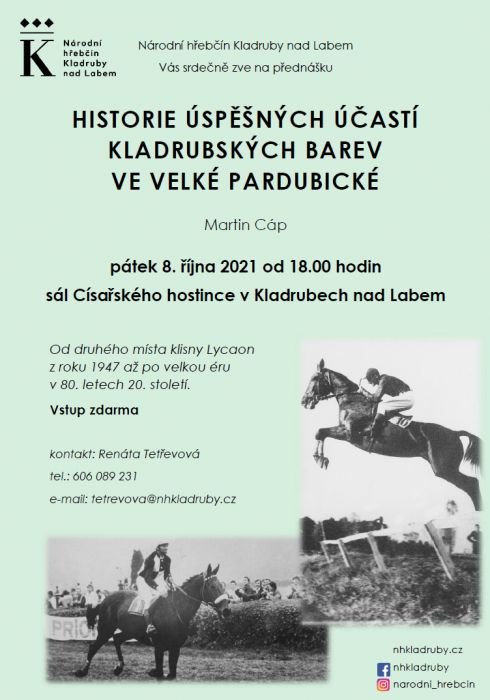 Přednáška „Historie úspěšných účastí kladrubských barev ve Velké pardubické“