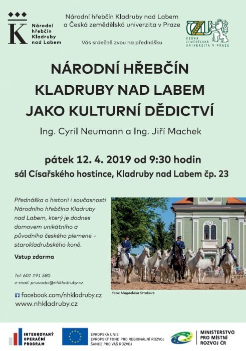 NH Kladruby nad Labem Vás srdečně zve na přednášku, která se bude věnovat historii i současnosti Národního hřebčína Kladruby nad Labem.