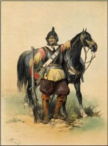 Pokud jde o kyrysníky (kyrysary), jako nositelé dávných tradic rytířské jízdy se těšili velké úctě. Kyrysník z konce 16. a první poloviny 17. století budil respekt již svým vzhledem. Oděn do tříčtvrteční plátové zbroje, uveleben v sedle vysokého, statného koně (jeho výška tvořila nejméně 15 pěstí – počítáno v kohoutku), máchal kolem sebe pádným mečem nebo pálil z dlouhých pistolí (v pouzdrech před sedlem jich měl zastrčen pár). Ještě v prvních letech třicetileté války se po boku kyrysníků objevovali kopiníci. Vyvinuli se asi koncem 16. století v habsburském Nizozemí z posledních zástupců rytířské jízdy, příslušníků ordonančních kompanií (žendarmů). Ve své podstatě se od kyrysníků lišili jen tím, že byli vyzbrojeni dlouhým kopím, a – alespoň původně – jezdili na ještě lepších koních. Za vše mluví komentář odborníka na slovo vzatého, Jakuba Walhausena, který ve svém spisu Kriegskunst zu Pferd („Umění jezdecké války“) z roku 1616 praví: „Kyrysníci – vynález naší doby, vznikli před padesáti či šedesáti lety, poněvadž kopiníků bylo ve Francii a Holandsku čím dál méně a byli čím dál méně způsobilí, takže místo nich začali být využíváni kyrysníci (…) Odeberte kopiníkovi jeho kopí a pěkného koně, a rázem je z něj kyrysník.“