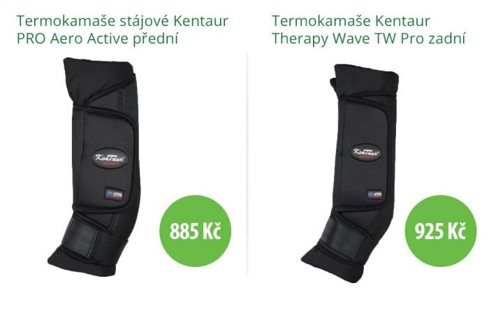 Termokamaše stájové Kentaur PRO Aero Active zadní a přední – Hřejivé termokamaše určené pro klidový čas po práci ve stáji. Praktická alternativa místo klasického bandážování. Koňské nohy jsou v suchém teple, zlepšujícím prokrvení a tím je podporována dobrá regenerace svalů a celého pohybového aparátu po práci. Cena: přední kamaše 885 Kč, zadní kamaše 925 Kč