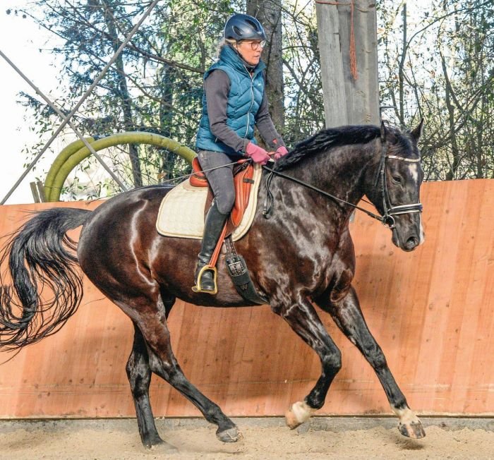 Silvia List-Reichart si svého valacha Savigny (9) sama odchovala. Když ho předala do základního výcviku, ukázalo se, že Savi reaguje velmi citlivě na tlak a má tendenci ztuhnout. Ztrácí rytmus i v kroku, nebo dokonce capluje na místě. Během dalšího výcviku se to zlepšilo, ale pořád má problémy s uvolněním. Zatím je valach opět u své majitelky.