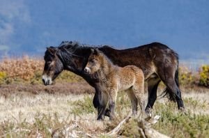 První písemné zprávy o divokých koních pocházejí z anglického Exmooru z roku 1086. Zvířata tam byla od nepaměti vedena na seznamech divoké zvěře a byla součástí královské honitby. Zatímco na kontinentu byli divocí koně člověkem zcela vyhubeni, právě v Exmooru se divoce žijící populace udržela až do současnosti izolovaná od domácích stád.