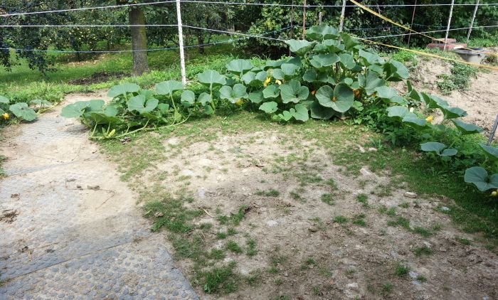 Dýně hokaido nasazená přímo uvnitř výběhu – vděčná plodina s nespočetnými možnostmi kuchyňské úpravy, absolutně nenáročná na uskladnění (klidně si ji vystavte na skříň a poličky doma v teplé kuchyni, vydrží celou zimu).