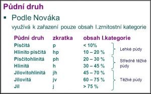 Podle převahy té které složky rozlišujeme hlíny písčité, prachovité a jílovité (+ mezistupně mezi těmito základními kategoriemi).