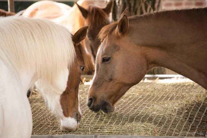 Založit odměřenou dávku sena ve vychytaném množství, kdy ráno nalezneme spokojené koně a právě doluxovaná krmná stanoviště, určitě neznamená, že jsme tyrani. Stačí se zaměřit na prodlevy mezi jednotlivými dávkami – při systému kupičkování/dávkovaného nakládání krmelců by koně neměli zůstat bez přístupu k objemu déle než dvě tři hodiny.