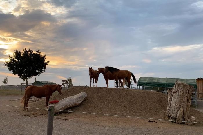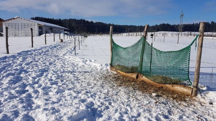 Bedny domácí výroby nastavěné porůznu na několikakilometrovém okruhu kolem velkých pastvin. Majitelé pobyt v pastvině dávkují, zpevněné treky a velký výběh bez trávy je přístupný stále.