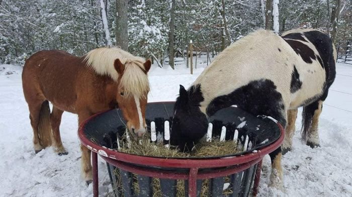 Podmínkou bude opuštění zaběhaného (pohodlného) systému nakulení velkého balíku a „ať se o sebe koně postarají“. Bude to chtít balíky rozebírat a rozvážet (ať už na zem, nebo do krmelců). Prostě trošičku pracovat a trošičku se i sami hýbat. Což zase nezní tak úplně špatně, ne? Nejen koním pohyb prospívá…